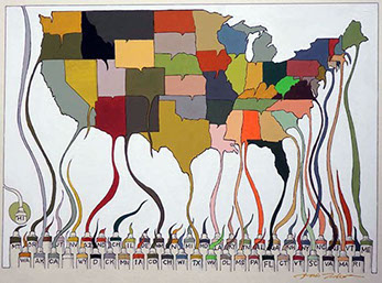 Completed in 1993, the work, "Dedicated to Georges Seurat", is made with 900,000 colored pins to recreate actual size of Seurat's master piece of neo-impressionism,"A Sunday Afternoon on the Island of La Grande Jatte".