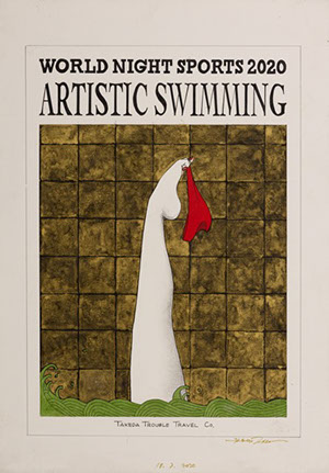 The brilliant colors, strong design sense, and exuberant vitality typical of the 1970s also appear in prints. During this time, the range of media employed by Japanese print artists expanded to include not only the woodblock and stencil prints that had been dominant in the previous decade, but also silkscreen, etching, and lithography. Works such as Yokoo Tadanori’ s 1974 silkscreen, pictured above, resonate with the tenor of the age, melding Buddhist iconography with an electric palette. Among the new, younger artists who rose to prominence were a number of women, part of a gradually increasing trend toward gender equality in the arts. Many of the artists featured in this exhibition-including Tadanori, Takeda Hideo, and Oda Mayumi-are still creating prints today.